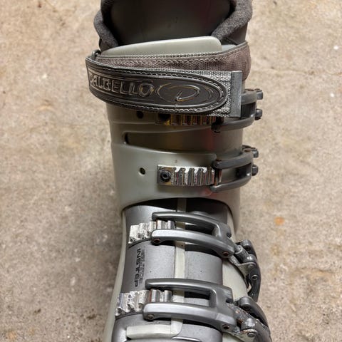 Madshus V60 Double Skate langrennsski. Skiene har en kombinasjon av farger med rødt, hvitt og svart. Designet for skøytestil (skate).