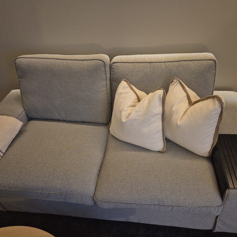 Brukt Kivik sofa med sjeselong selges. Vendbare puter, og vaskbare trekk. Sofaen kan enkelt vendes motsatt vei, altså at sjeselongen kan settes på den vi andre siden. Sofaen er hel og fin, men selvsagt med enkelt bruksmerker.