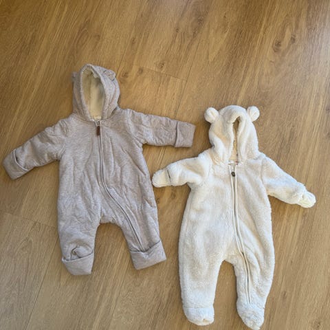H&M fleece babydress i størrelse 56, unisex, i hvit farge. Laget av fleece materiale som gir varme og komfort. Passer for små barn.