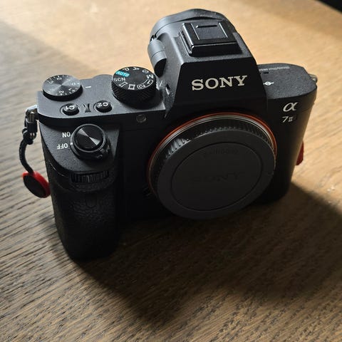 Sony A7Rii godt brukt men fungerer utmerket, selges med SONY VG-C2EM Vertical Battery Grip med 2 batterier. 42.4MP sensor, 4K Video, 7952 × 5304 pixels, S-log 2, Autofocus 399 Points phase-detect + 25 contrast chutercount ca 90k, 18% av forventet chutercount