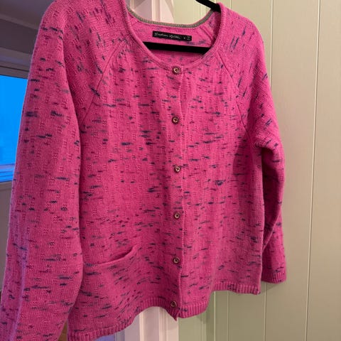 Gudrun Sjödén jakke som kan vrenges og brukes både som grønn eller blå. I lin og bomull. Størrelselappen er tatt av men jeg som har brukt den bruker normalt 40-42 og den har passet perfekt. Tipper den er en stor M eller liten L.