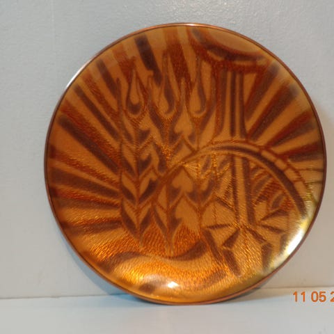 Som nytt. Fat i emalje og kobber fra gullsmed David Andersen.