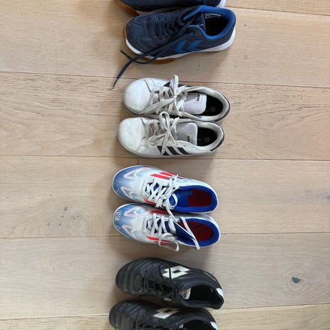Adidas sko for jente i størrelse 33. Skoene har ulike farger og design, inkludert rosa, hvit og flerfarget. Passer til daglig bruk for barn.