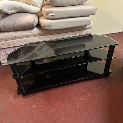 Tv bord selges på 500 kr. Ingen synlige bruksmerker. Bordet toppen og hyllene lagd av svart glass.