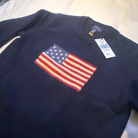 Selger en helt ny, ubrukt Polo Ralph Lauren flag cotton sweater i størrelse small.