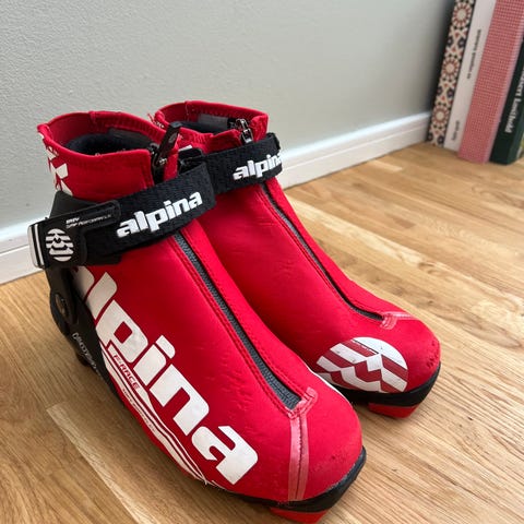 Pent brukte alpina skisko størrelse 34 selges.