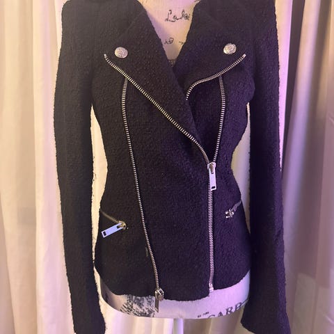 ZARA WOMAN sort tweed bikerjakke – str. M