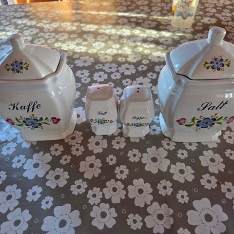 Krydderkrukker og Kanne i Keramikk med Blomstermotiv