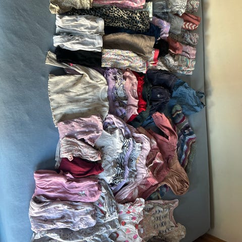 Stor klespakke til jente med både fintøy og hverdagsklær, noen flekker kan forekomme, men det meste i veldig god stand.