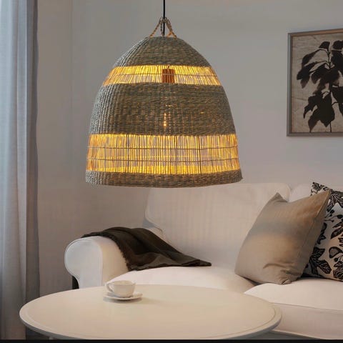 Selger en håndlaget Torared lampe fra IKEA med svart oppheng. Gir koselig, stemningsfylt lys med vakre sjatteringer. Anhenget Hemma har 1,8 m ledning.