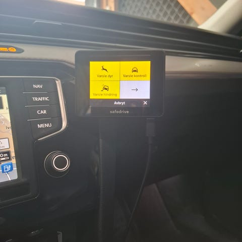 Garmin Drivetrack 72 med fargeskjerm som viser kart og ruteinformasjon.Enheten har flere funksjoner inkludert ruteberegning, og Hundesporing, musikkstyring og telefonintegrasjon. Passer til bruk i bil for navigasjon og planlegging av reiser. G