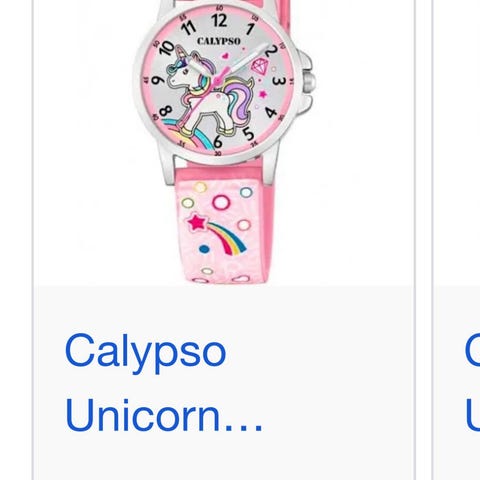 Lilla Calypso barneklokke med silikonreim. Klokken trenger nytt batteri. 10 atm, mineralglass og urskive med glitter.