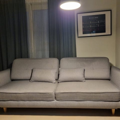 Stilren og pent brukt 3-seters sovesofa selges fordi jeg har kjøpt ny. Sofaen har ingen bruksmerker og er veldig allsidig – like god som seng, som utslått sofa til filmkvelder, og som vanlig sofa.