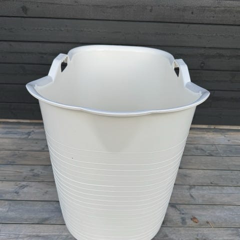 Plastbadekar til voksne. Passer til små baderom og kan flyttes rundt. Kjøpt på megaflis.