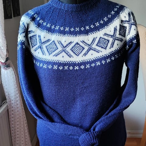 Dame og herre genser størrelse s/m og herre large lite brukt , håndstrikket i ull kr. 500. Pr.stk 😊😊