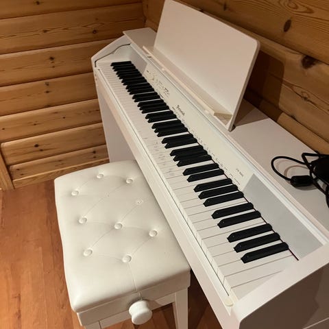 Komfortabel pianokrakk (nærmest ubrukt) følger med.