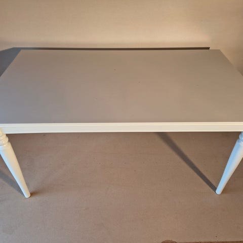 Selges på grunn av overgang til større bord. På bildet vises vannskader som blir synlige når bordet er utvidet, og bordet selges derfor rimelig. Opprinnelig pris var kr 5 295.