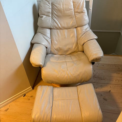 Pent brukt grå stressless med krakk. Meget behagelig lenestol med justerbar nakke. Selges pga flytting.