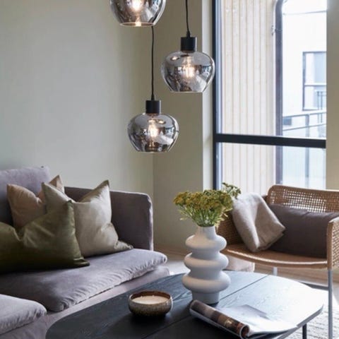 Kelly pendellampe er en stilig og moderne løsning for enhver stue. Denne lampen, med sitt røykfargede, munnblåste glass, gir et mykt og innbydende lys som passer perfekt over spisebordet eller i en koselig sofakrok.