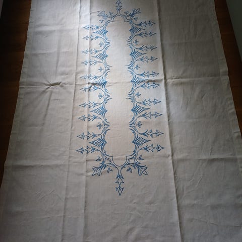 Har ligget mange tiår i et lintøyskap, og trenger garantert en vask