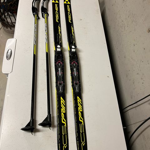 Et par Fischer 110cm smørefrie ski m/95cm staver & et par Åsnes 100cm smørefrie ski m/80cm staver.