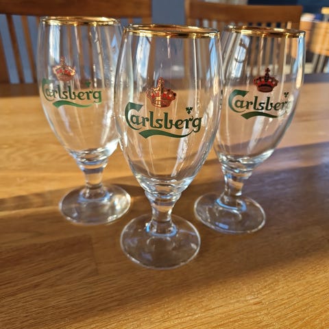 12 Carlsberg ølglass selges helst samlet. Alle er lite brukt og uten skader