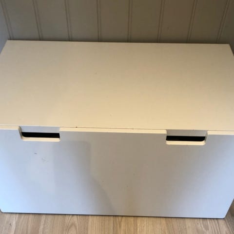 Selger STUVA kommode fra IKEA i hvit utførelse. Kommoden har en stor og dyp skuff på hjul med utskåret håndtak. Kan rulles helt ut. Passer perfekt til barnerom, gang eller stue.