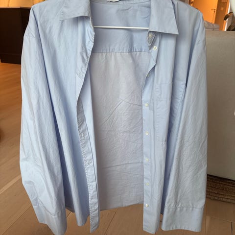 Mango skjorte i hvit farge, laget av 100% bomull. Skjorten er i størrelse L , oversize, passer godt for gravise. Brukt og vasket 1 gang.