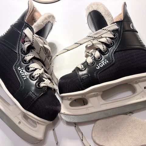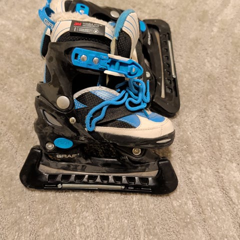 Graf barn skøyter størrelse 27 -30 designet for ishockey. Skøytene har hvit og lilla fargekombinasjon og er laget med materialer tilpasset barn. Justerbar størrelse for bedre passform.