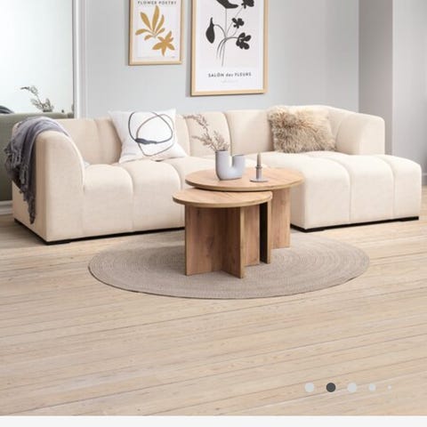 Selger en flott og moderne hjørnesofa med åpen ende. Sofaen har et stilrent, skandinavisk design med smale vanger og høye, svarte ben som gjør det enkelt å støvsuge under (passer fint for robotstøvsuger).