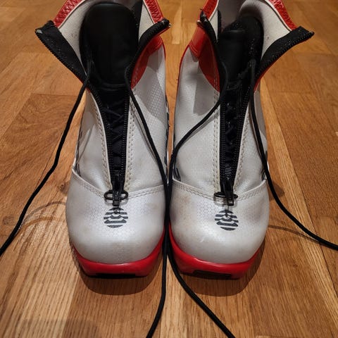 Alpina langrennsko, størrelse 37. Materialet og detaljer er tilpasset for å gi støtte og komfort under langrennsløping.