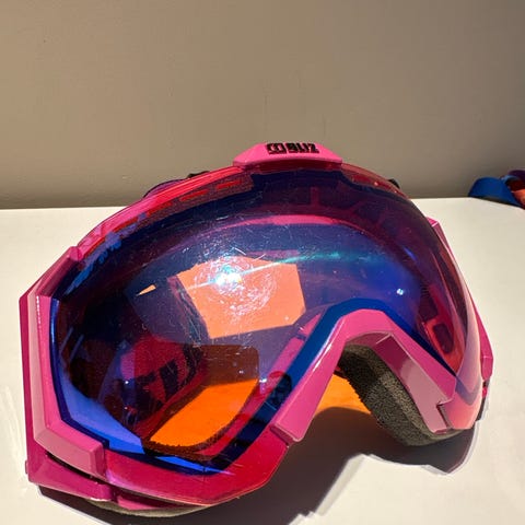 SnøNix skibriller med speilglass og elastisk stropp med logo. Leveres med hardt beskyttelsesetui for oppbevaring og transport.