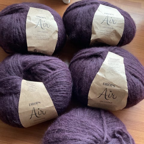 Unikt garn håndfarget tykk mohair garn, farge red red wine. 3 stk a 100 g. Nypris 349,- pr stk.
