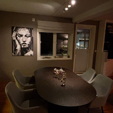 Bordet som er avbildet på enkelte bilder følger ikke med i denne annonsen. Det ligger ute som egen annonse, og det er mulig å få pakkepris på både bord og stoler. Se den andre annonsen for mer informasjon om bordet inne på min profil.