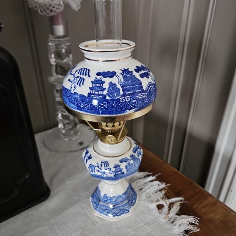 Oljelampe i Opalinglass i Jugendstil fra starten på 1900-tallet 60cm. Høy hel og pen