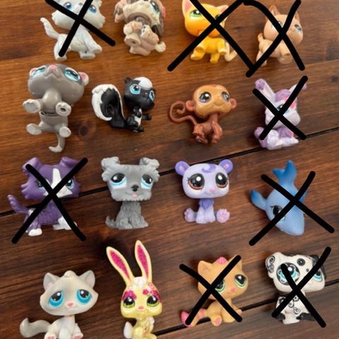 Littlest Pet Shop samling bestående av 7 figurer.