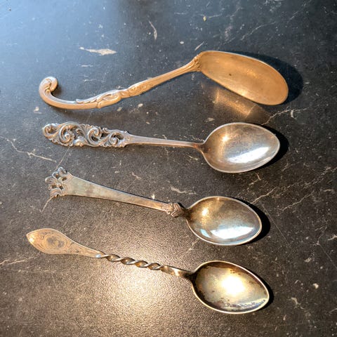 Bestikket er laget i sølvplett og har et klassisk design med flotte detaljer på skaftet. Det er 9 kakegafler, selges til 250 kr per gaffel eller samlet for 2000 kr. Kan sendes mot at kjøper betaler frakt☺️