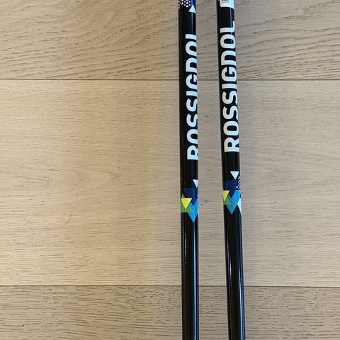 Rossignol langrennstaver i svart farge. Staver med stropp og håndtak. Aluminium, Ø16.