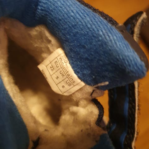 Vintersko til barn selges. Skoene er fôret, men ikke spesielt tykke. Brukt av et barn før han begynte å gå, så ingen slitasje. Kan hentes eller sendes.