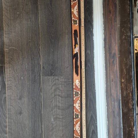 Lengde 150 cm. Bredde 40 mm. Tykkelse 5 mm.