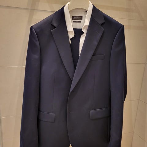 Dressmann Ull Dress i blå farge, størrelse 52 for herre. Laget av ullmateriale. Passer til formelle anledninger og kan kombineres med skjorte og bukser.