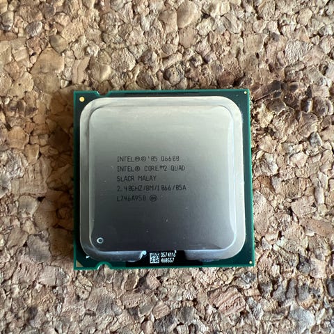 Intel Core 2 Quad prosessor med modellnummer Q6600. Prosessoren har en klokkefrekvens på 2.4 GHz