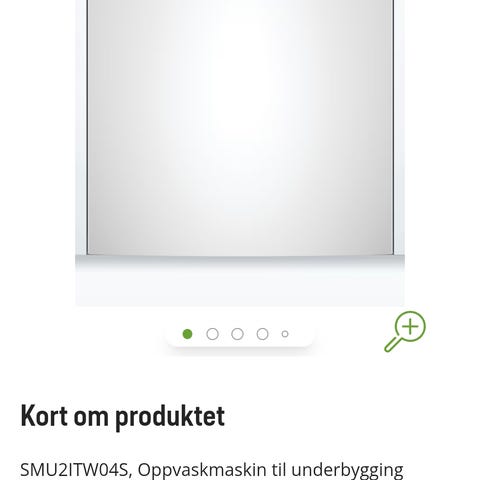 Selger oppvaskmaskinen pga nytt integrert kjøkken.
