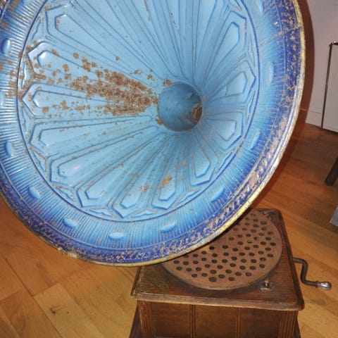 Gammel bærbar Brunswick grammofon Polyphon Musik, uten nål/hode. Sveiv medfølger og den kan trekkes opp og spinner plater fortsatt. Jeg har plater også til slike i egen annonse for kr 150 kr plata. Det finnes deler på nettet til slike, så det er mulig at den kan spille igjen, i og med at mekanikker fungere. Mekanikken er merket «Polydor 29».