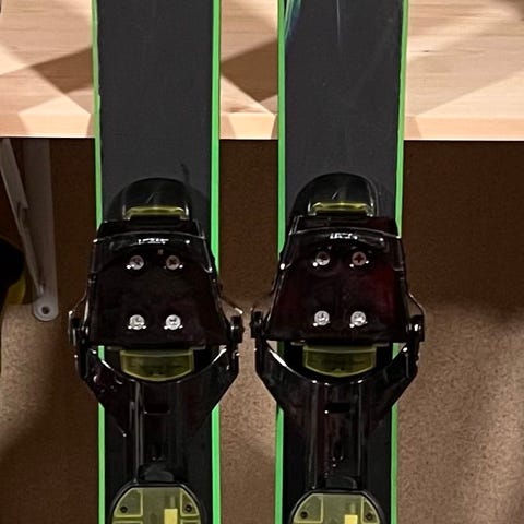 181cm lang, med Rottefella Cobra bindinger. Godt tatt være på og i god stand, se bilder. Relativt stive ski.