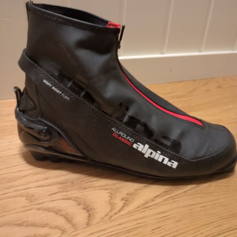 Alpina N Tour skisko i størrelse 43, farge svart. Skoen har overdel i tekstil og gummi, fôr i tekstil og gummisåle. Egnet for langrenn og turski.