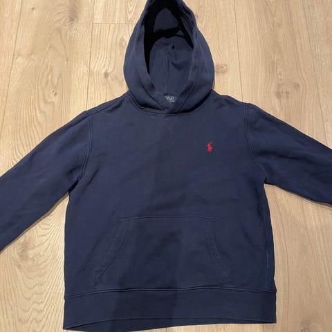 Godt brukt genser men mye bruk igjen. Har falmet litt i fargen og litt slitt (se bilder), selges derfor som den er til en billig pris. Er en Polo Kids str large, men passer en str 152.