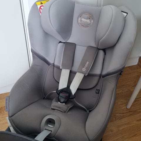 Selger en Cybex Sirona Z2 i-Size bilstol med tilhørende ISOFIX-base.