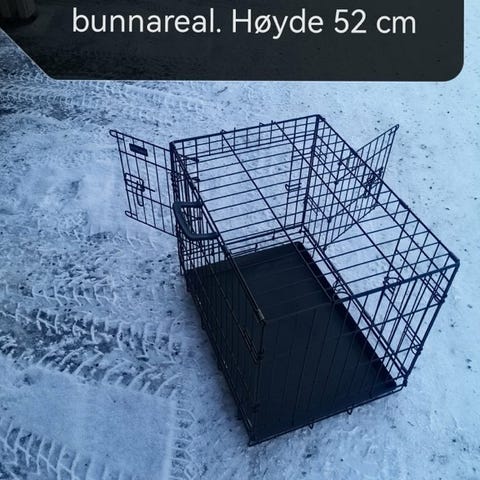 Transportbur for kjæledyr laget av plast og metall. Buret har en dør i metall med låsemekanisme og ventilasjonssider for lufttilførsel. Passer til transport av ulike dyr som hunder. Mål ca. 50x75x60cm. Høyden er 60 cm.