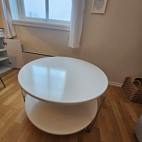 Hvit sofabord med 3 skuffer. Pent brukt ingen skade.